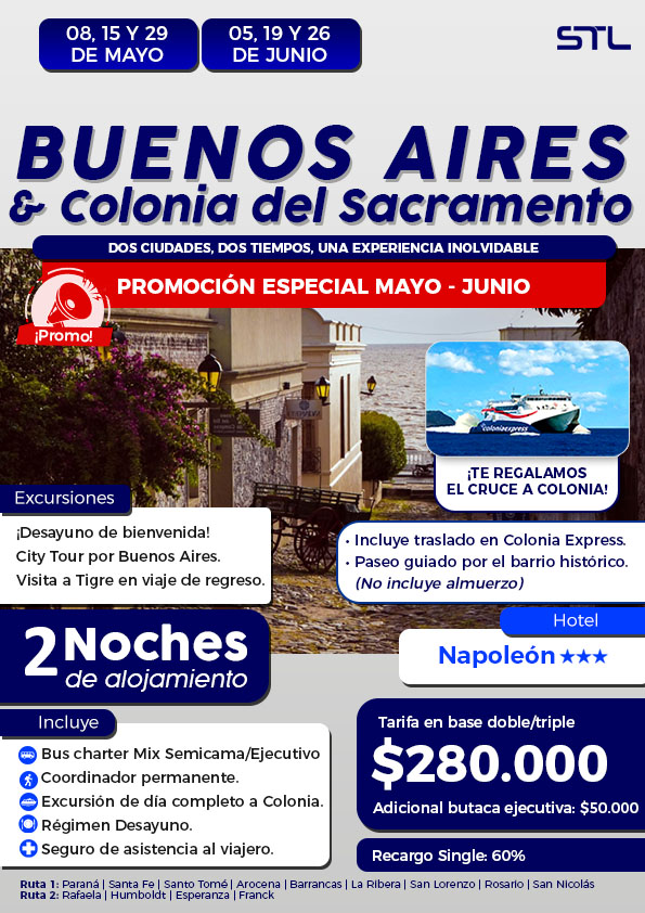 El equipaje es transportado por cuenta y riesgo del pasajero. El organizador no se responsabiliza por pérdida o daños que el equipaje pudiera sufrir, cualquiera sea el motivo que lo produjere.
