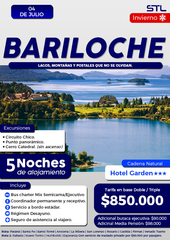 San Carlos de Bariloche es uno de los destinos más emblemáticos de la Patagonia, donde la naturaleza se luce en cada rincón: lagos cristalinos, montañas imponentes y bosques que parecen sacados de una postal. Ya sea para recorrer sus paisajes, disfrutar de la gastronomía regional o vivir experiencias al aire libre, Bariloche ofrece una combinación perfecta de aventura y relax durante todo el año, convirtiéndose en una escapada ideal para desconectar y dejarse sorprender.