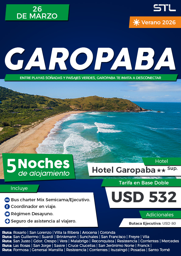 Ruta C: Santo Tomé 04.40 hs. / Santa Fe 05.00 hs. / Paraná 06.00 hs. / Cerrito 07.00 hs. / Santa Elena 08.30 hs. / La Paz 09.15 hs. / San José de Feliciano 11.00 hs. / Curuzú Cuatiá 12.45 hs. / Paso de los Libres 14.30 hs.
